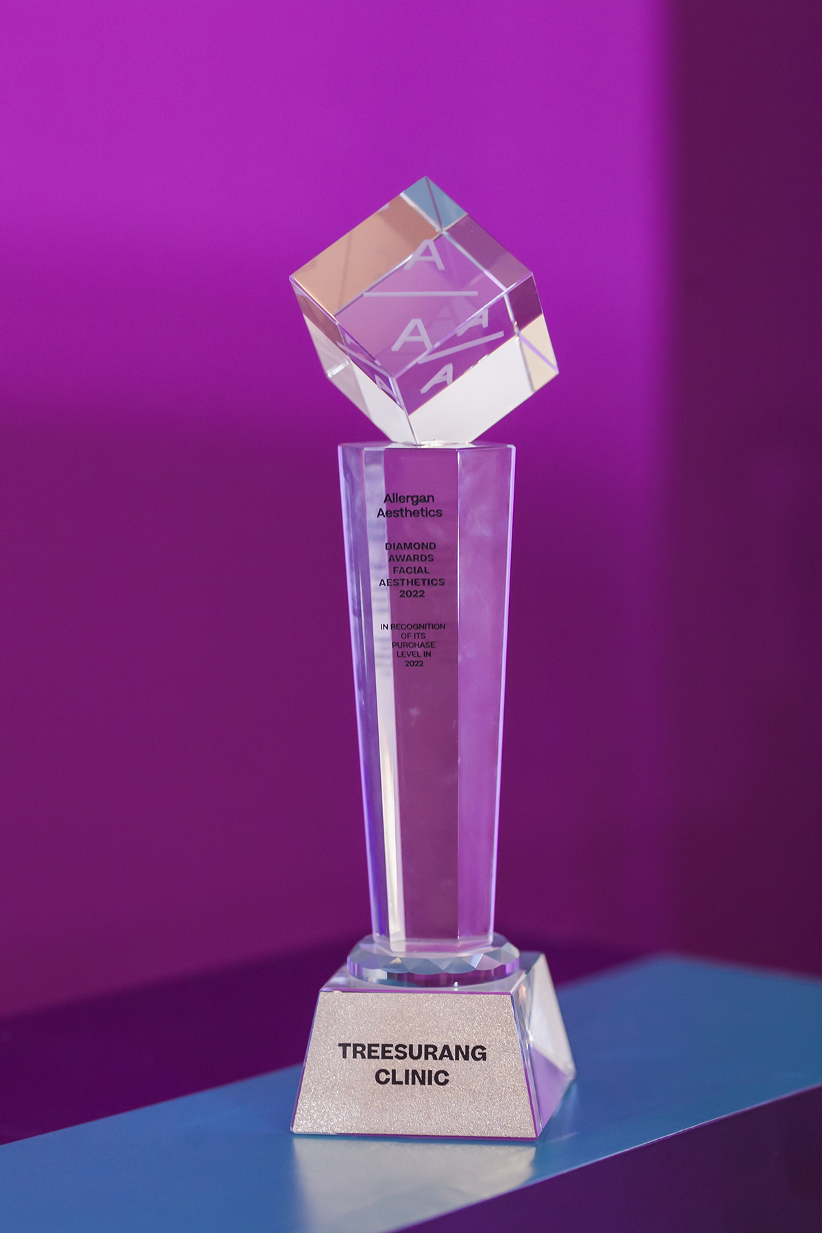 ตรีสุรางค์ คลินิก ได้รับเกียรติเชิญให้เข้าร่วมงาน Allergan Aesthetics Diamond Awards 2022 และได้รับรางวัล “Diamond Awards Facial Aesthetic 2022” เป็นรางวัลสำหรับ คลินิกที่มียอดใช้ฟิลเลอร์ Juvederm และ โบท็อกซ์ Allergan สูงสุด ติดอันดับต้นของประเทศ ซึ่งมีเพียงไม่กี่คลินิกเท่านั้นที่ได้รับเชิญให้เข้าร่วมจาก Allergan Aesthetics Thailand เมื่อวันที่ 14 ธันวาคม 2565 ที่ผ่านมา