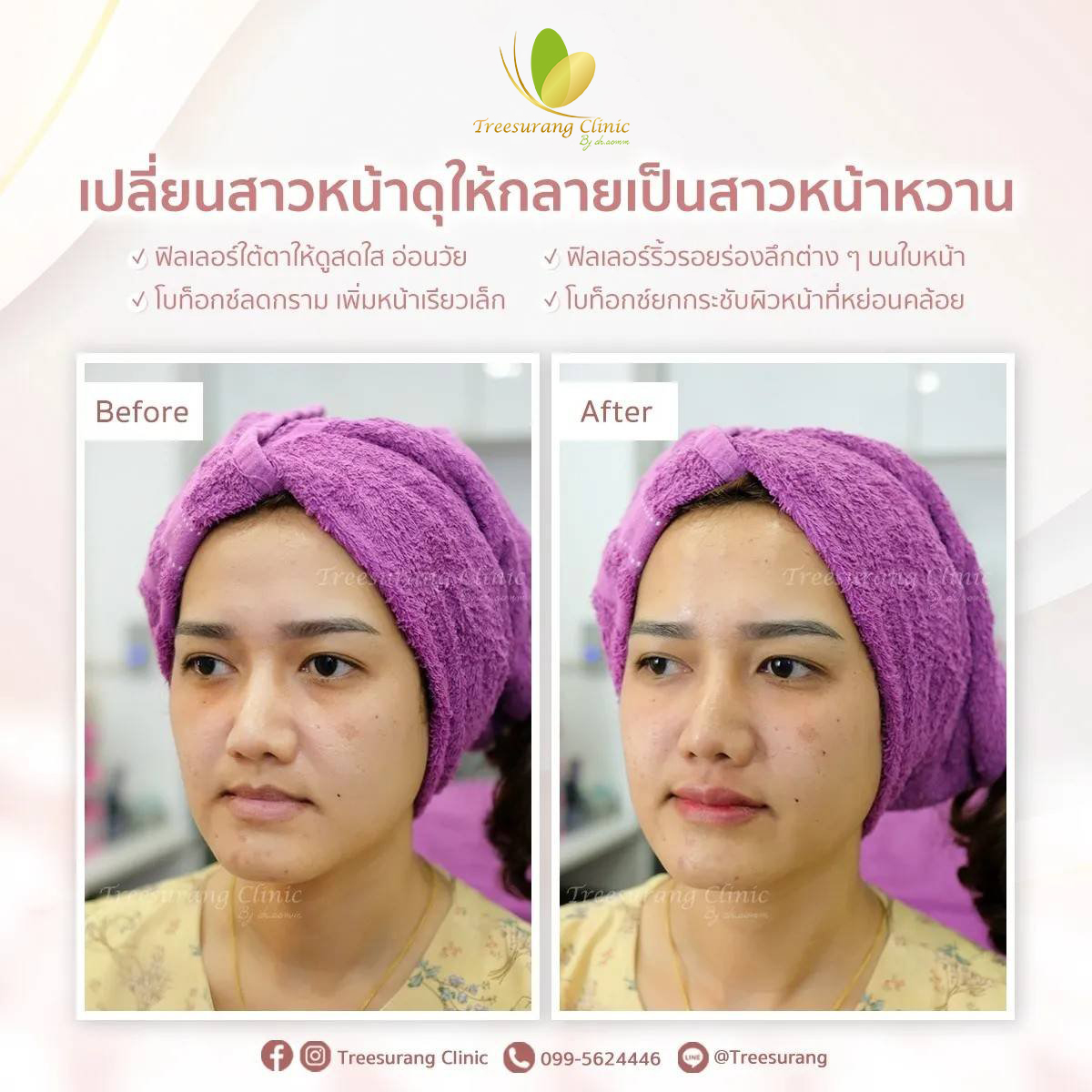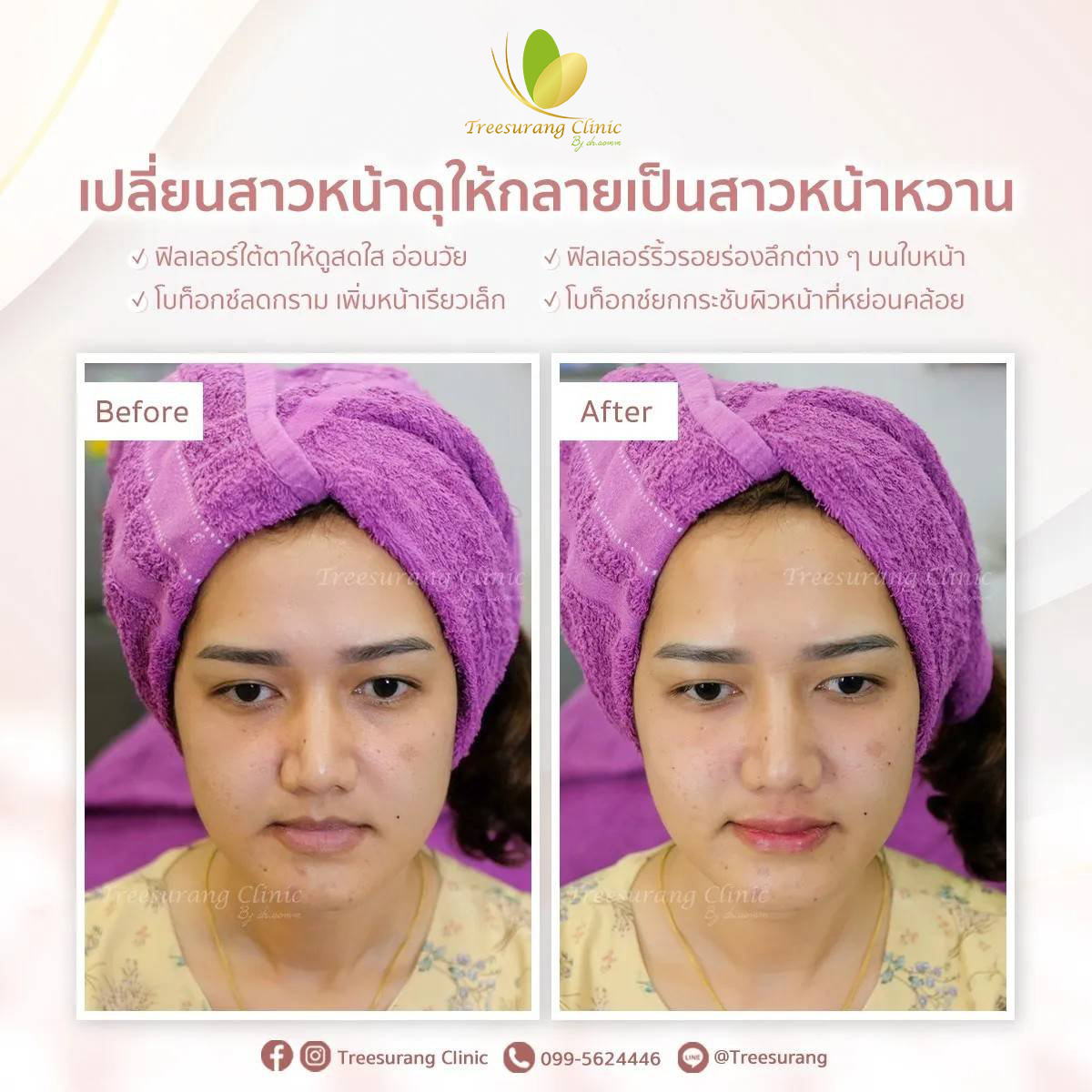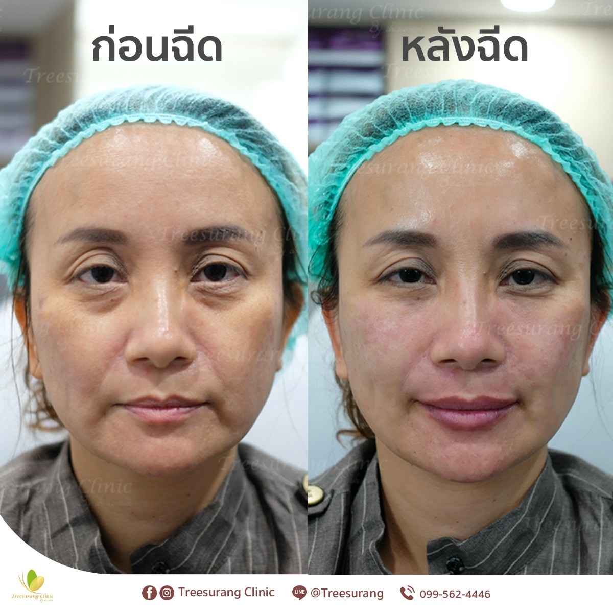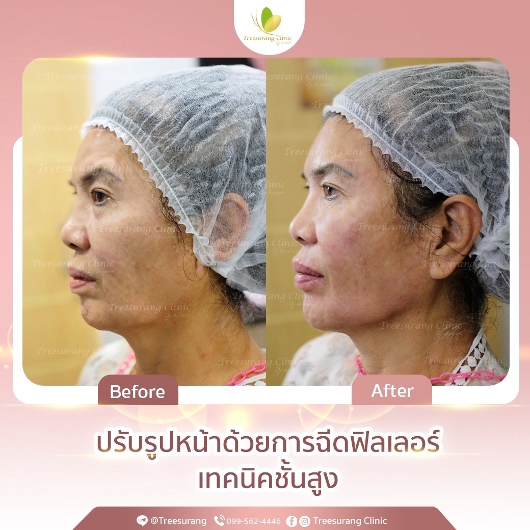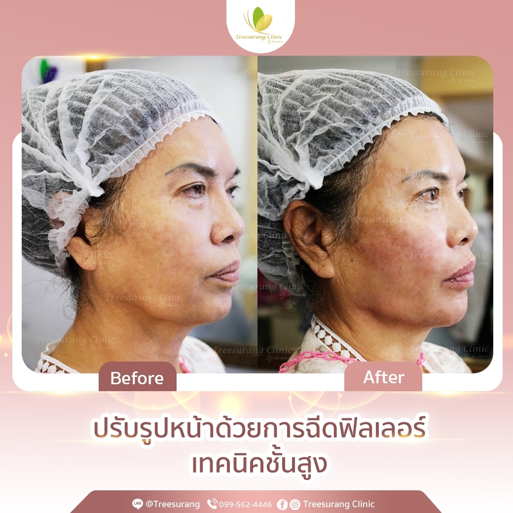 ภาพ Before-After การเปลี่ยนแปลงหลังฉีดฟิลเลอร์ปรับรูปหน้าอย่างชัดเจน หลังฉีด 15 นาที