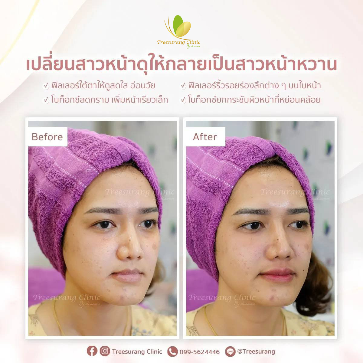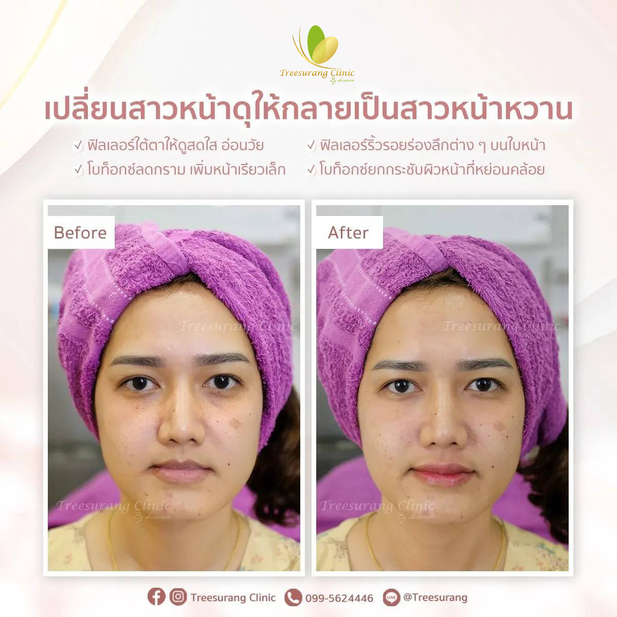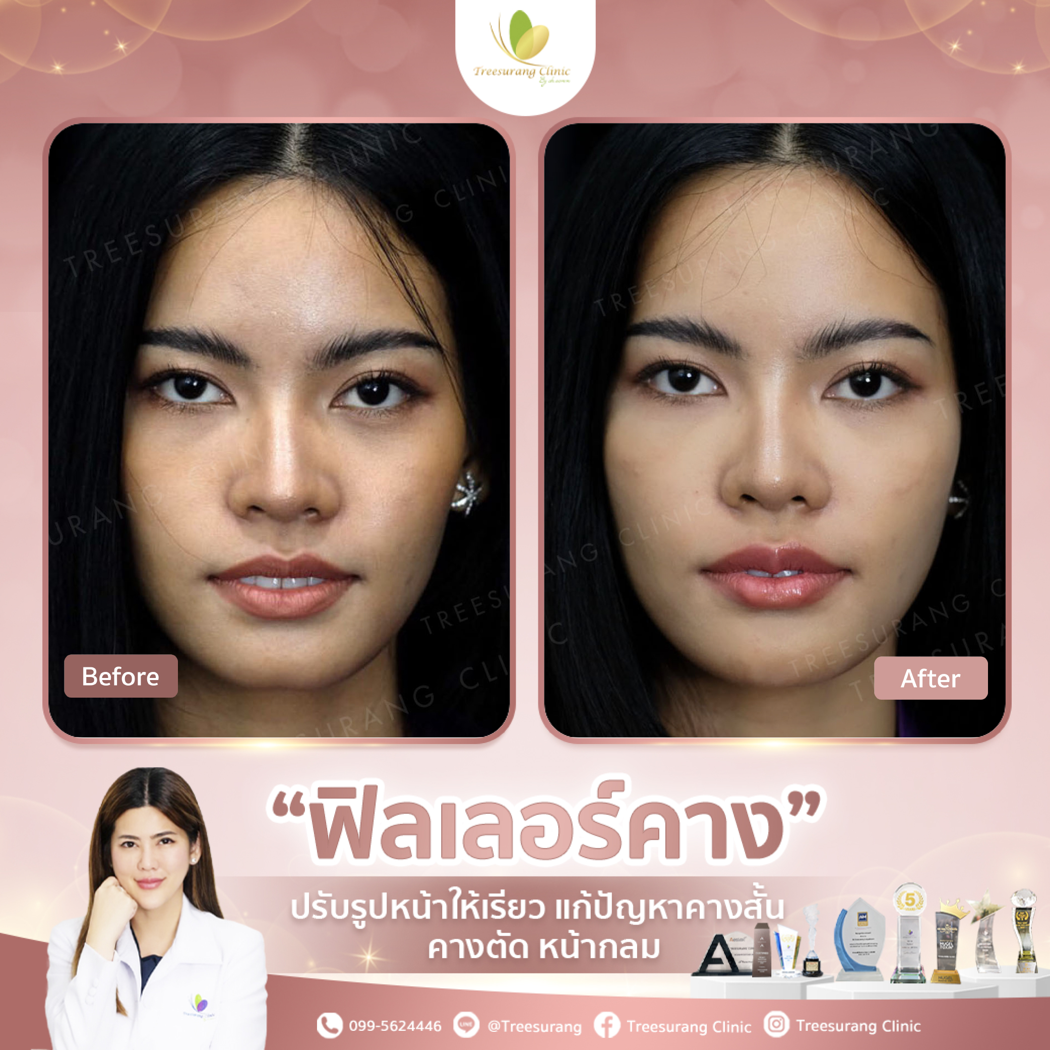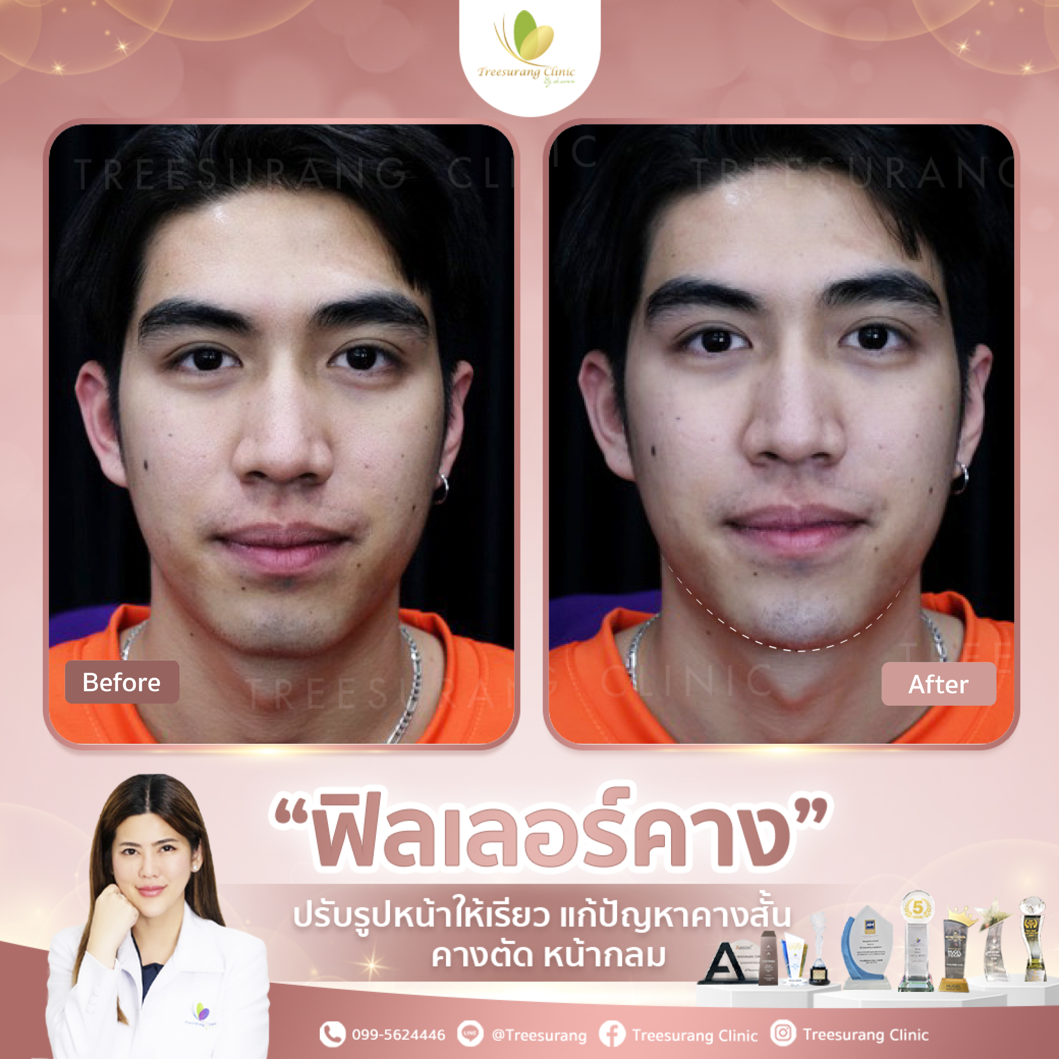 ภาพ Before-After การเปลี่ยนแปลงหลังฉีดฟิลเลอร์ปรับรูปหน้าอย่างชัดเจน หลังฉีด 15 นาที