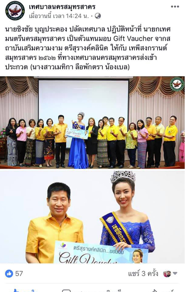 คุณหมออ๊อมได้เป็นสปอนเซอร์เวที “ประกวดเทพีสงกรานต์สมุทรสาคร 2562” จัดการประกวดในวันจันทร์ที่ 1 เมษายน 2562 เวลา 17.00 น. ที่ ศูนย์การค้าเซ็นทรัลพลาซา มหาชัย