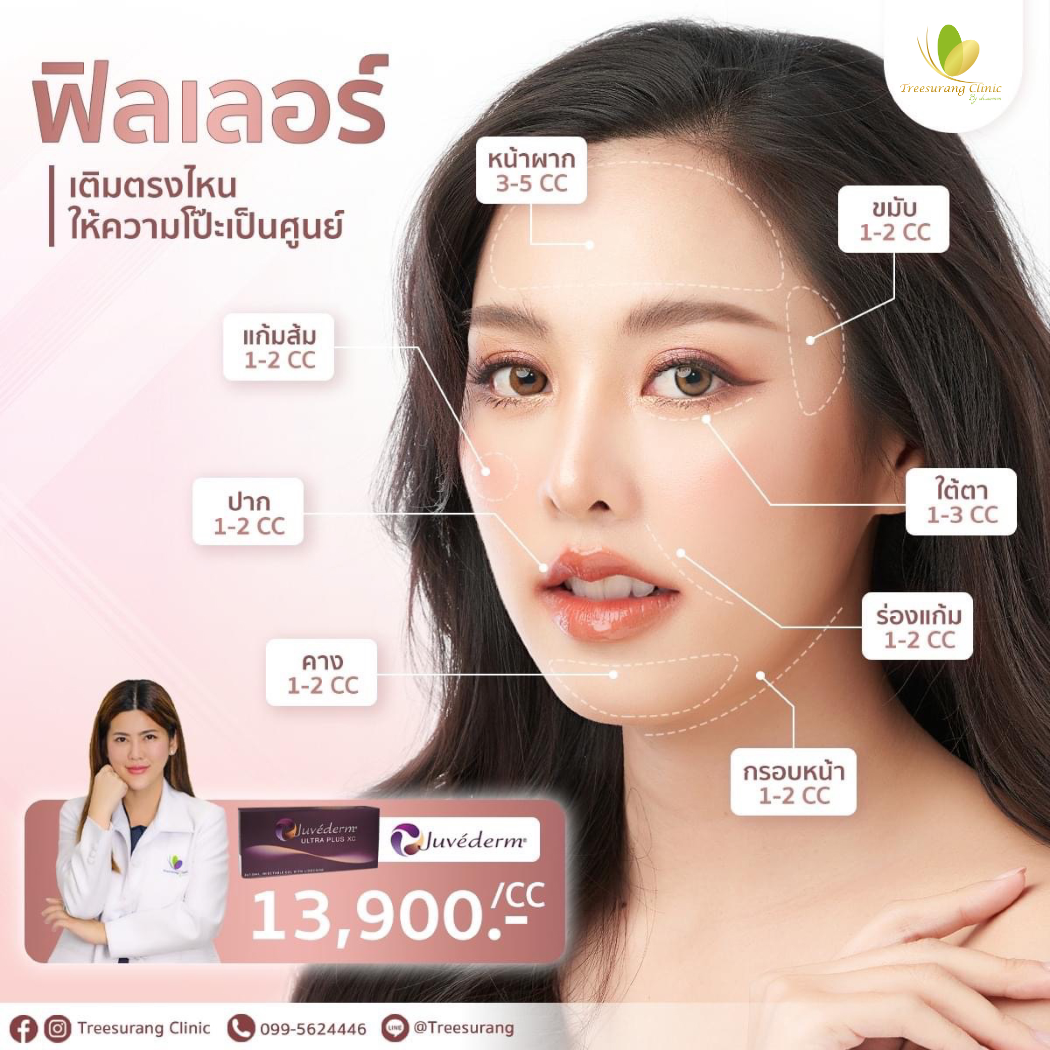 การเลือกคลินิก ฉีดฟิลเลอร์ที่ไหนดี ควรเลือกคลินิกที่เดินทางสะดวก นัดคิวกับทางคลินิกล่วงหน้า เพราะหัตถการการฉีดฟิลเลอร์นั่นเป็นที่ต้องใช้ความละเอียดสูง คุณหมออ๊อมจะออกแบบและวิเคราะห์ดีไซน์ใบหน้าเฉพาะบุคคล โดยใช้ฟิลเลอร์ในการปรับโครงสร้างใบหน้าทุกเคส ทุกขั้นตอน ตั้งแต่ให้คำปรึกษาจนถึงการดูแลโดยหมออ๊อม มาที่นี่สวยทุกคนค่ะ