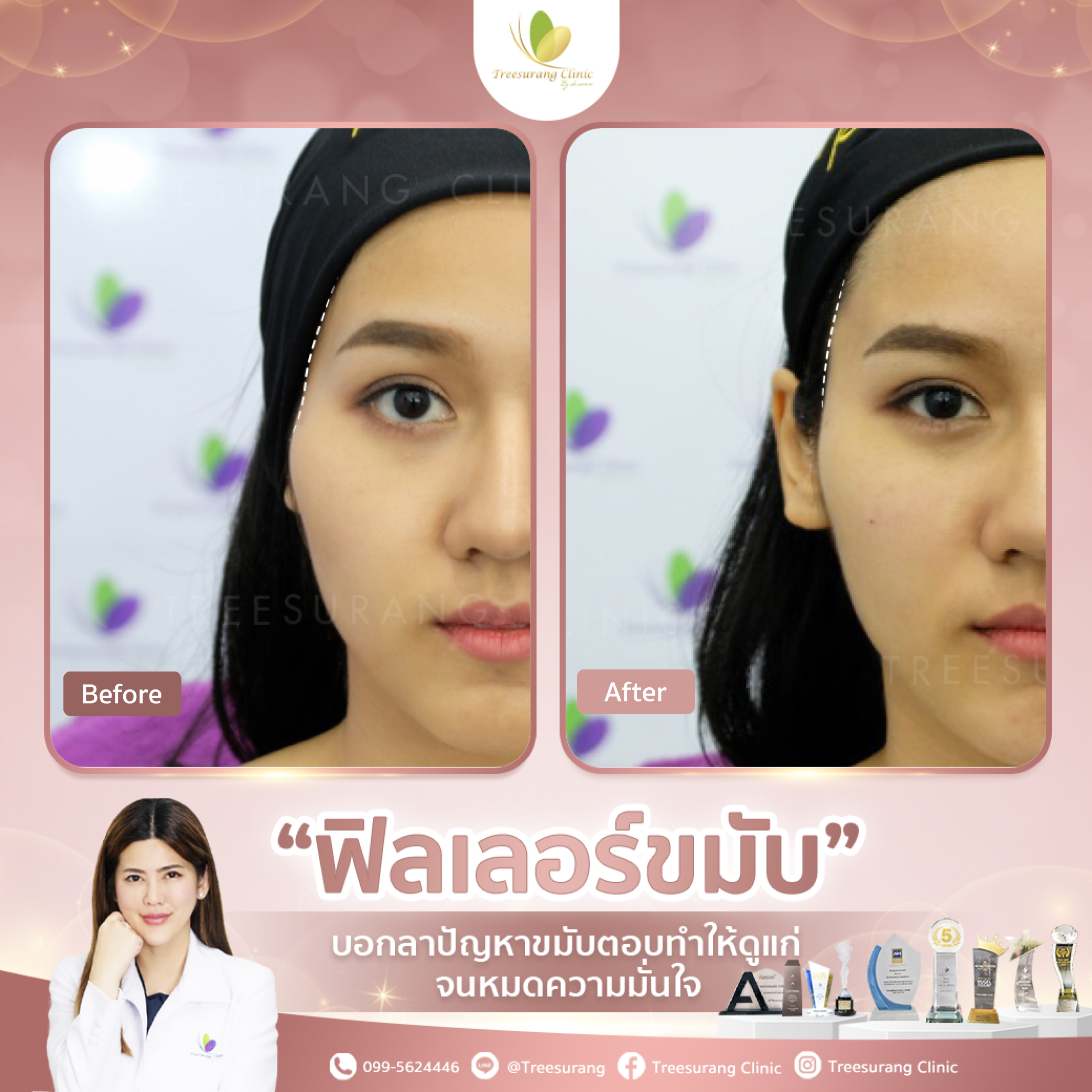 *ก่อนตัดสินใจฉีดฟิลเลอร์นั้นไม่ควรดูรีวิวที่เป็นภาพถ่าย Before-After อย่างเดียวเพราะภาพสวยๆเหล่านั้นอาจจะผ่านการตกแต่ง รีทัชมาก็เป็นได้ ควรดูรูป Before-After จากคลิป VDO เป็นหลักเพราะวีดีโอนั้นไม่สามารถตกแต่งหรือรีทัชได้ สามารถเชื่อถือได้มากกว่าภาพถ่าย