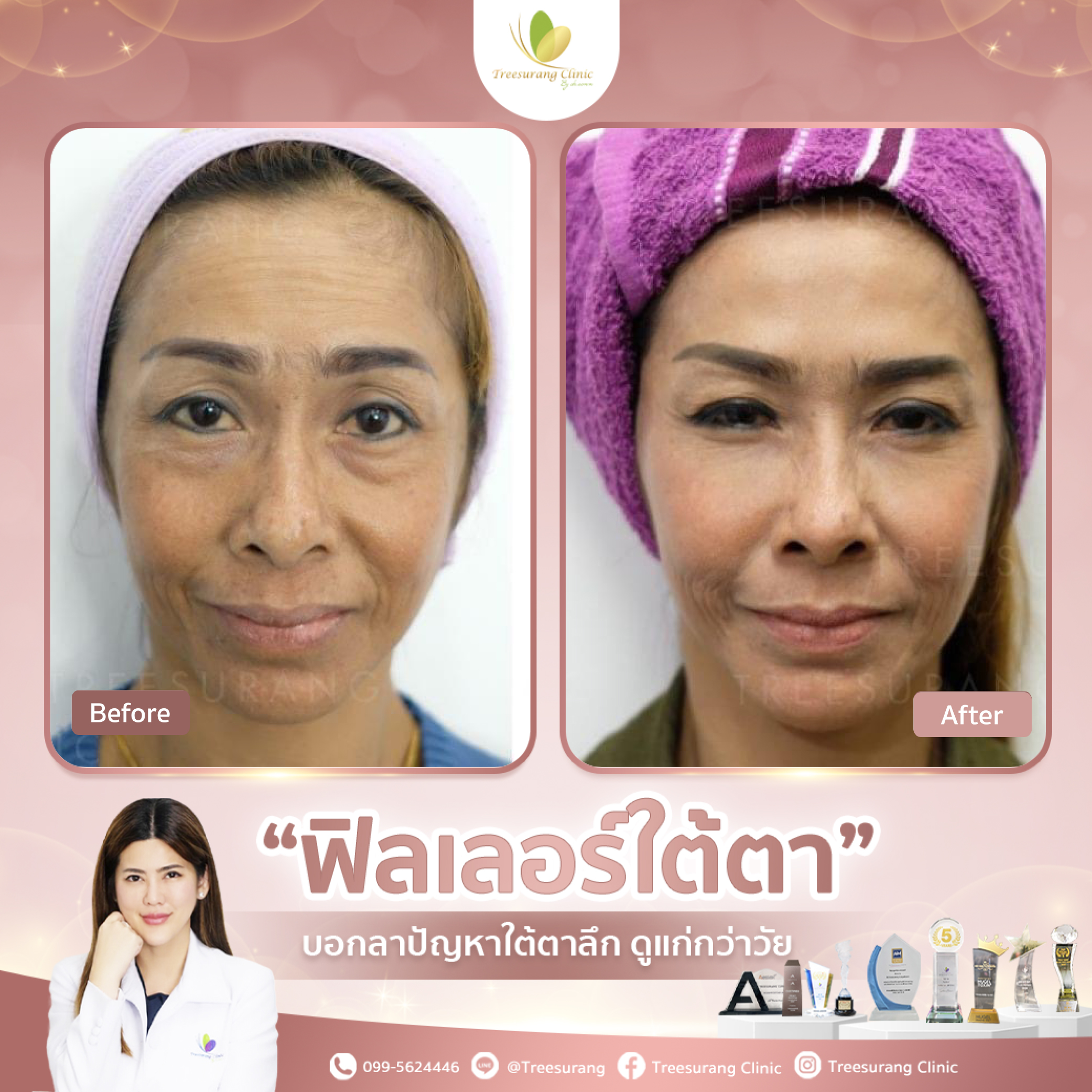 ภาพ Before-After การเปลี่ยนแปลงหลังฉีดฟิลเลอร์ใต้ตาอย่างชัดเจน หลังฉีด 15 นาที