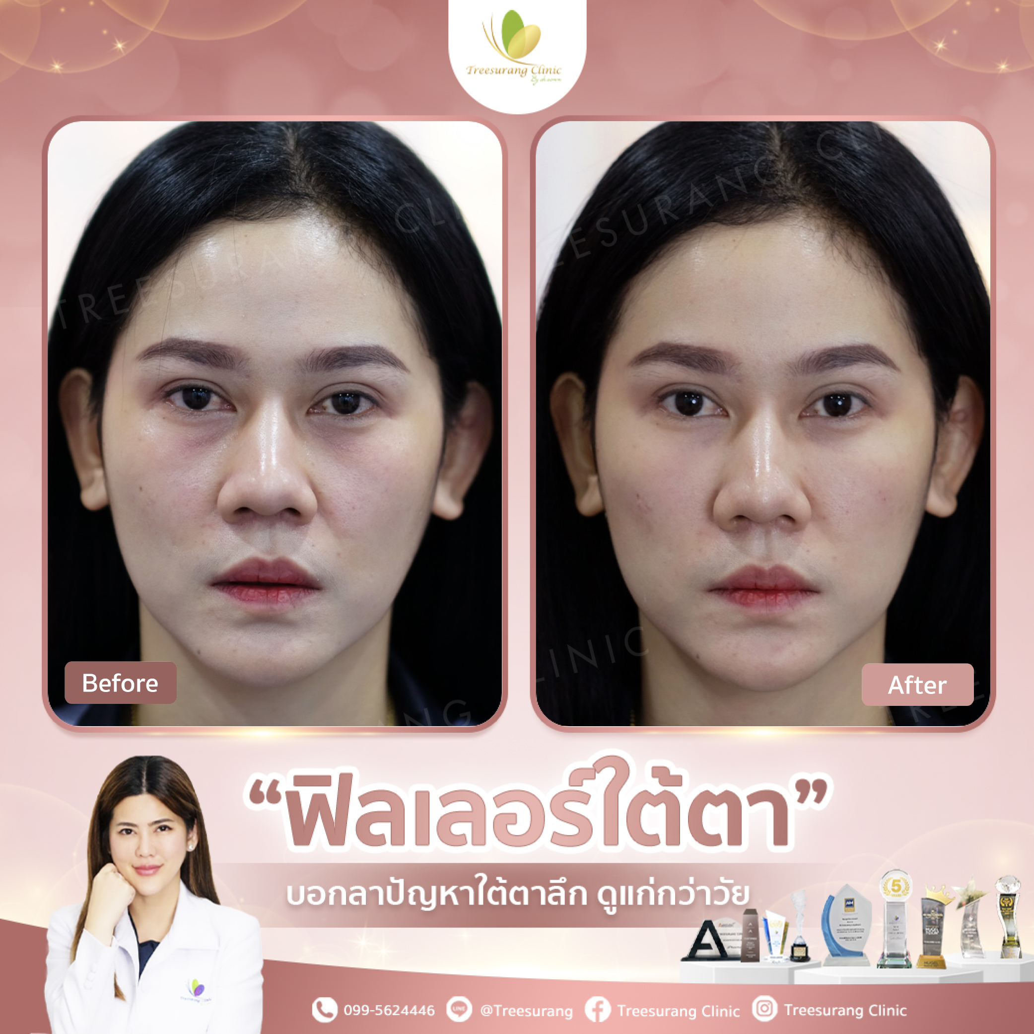 ภาพ Before-After การเปลี่ยนแปลงหลังฉีดฟิลเลอร์ใต้ตาอย่างชัดเจน หลังฉีด 15 นาที